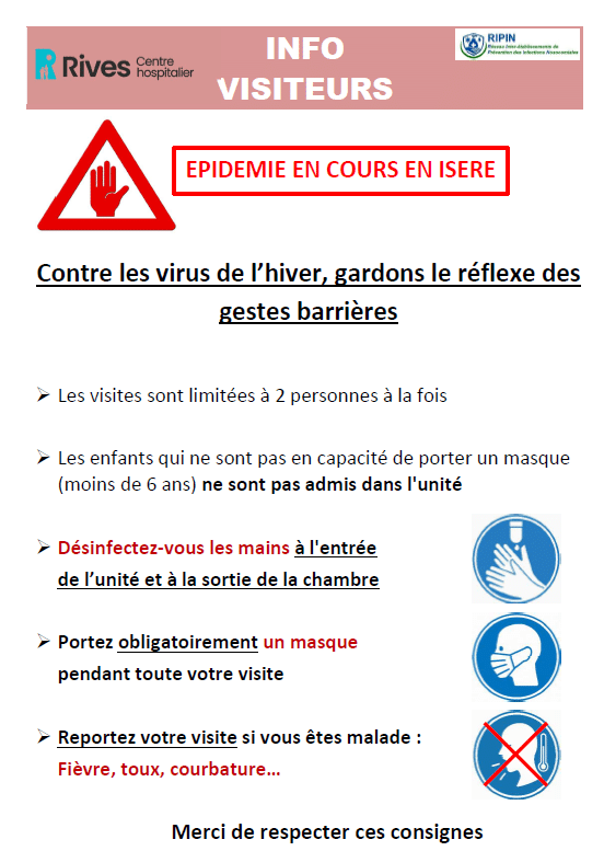 Devant l’augmentation de la circulation du virus de la grippe ces dernières semaines et le passage en phase épidémique grippe dans la région cette semaine, nous vous proposons de remettre en place les mesures de prévention des infections respiratoires aigües à partir de lundi 15/12/2025.